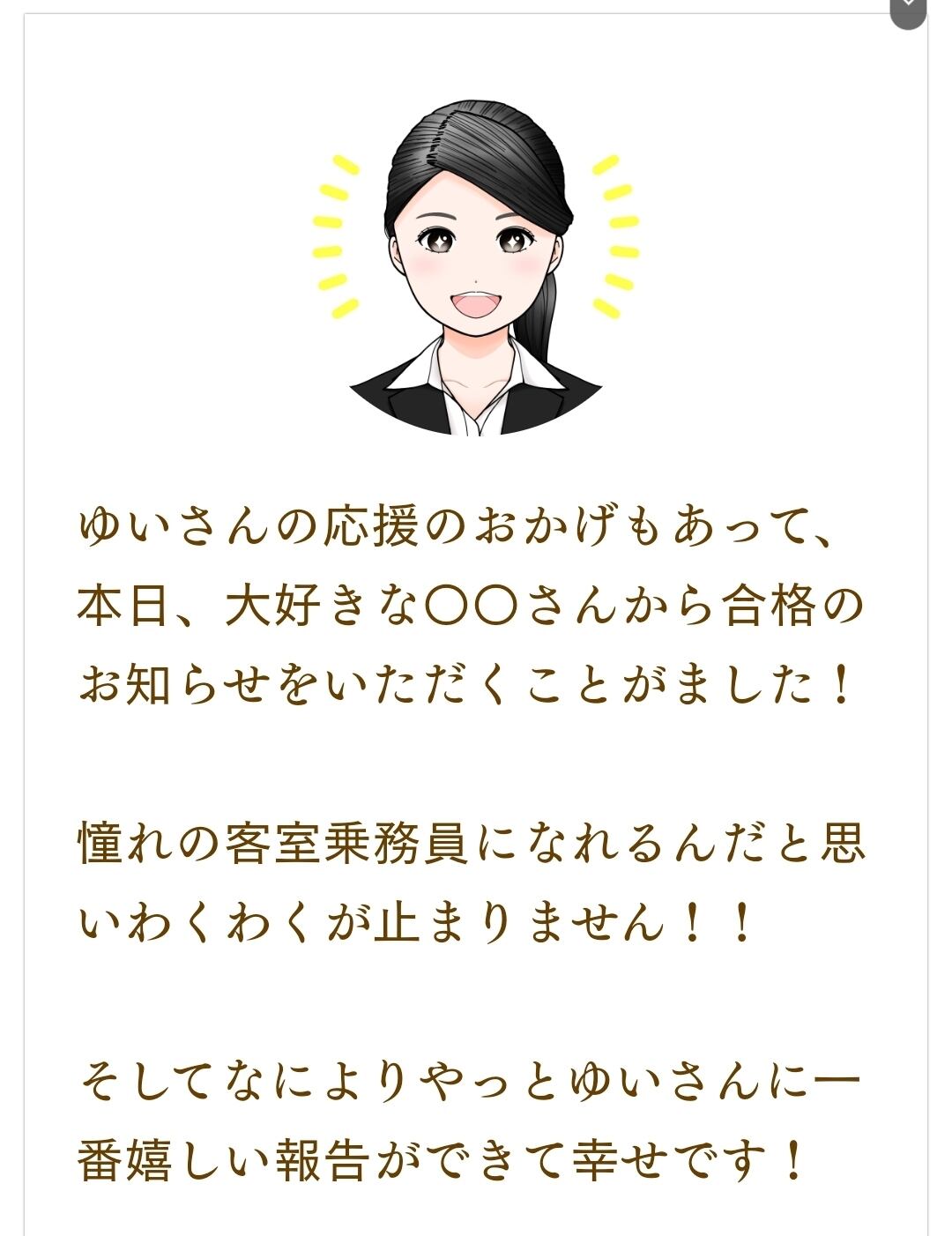 今までエントリーシートが一度も通らなかった私が、ゆいさんの資料を熟読し、音声を繰り返し聞き、最終選考が行けることができました!!!