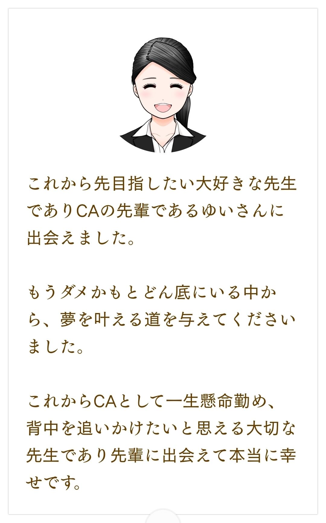 私の目標は、あなたの縁のあったエアラインで活躍し、最高のCA人生を歩んでいたただくことです。