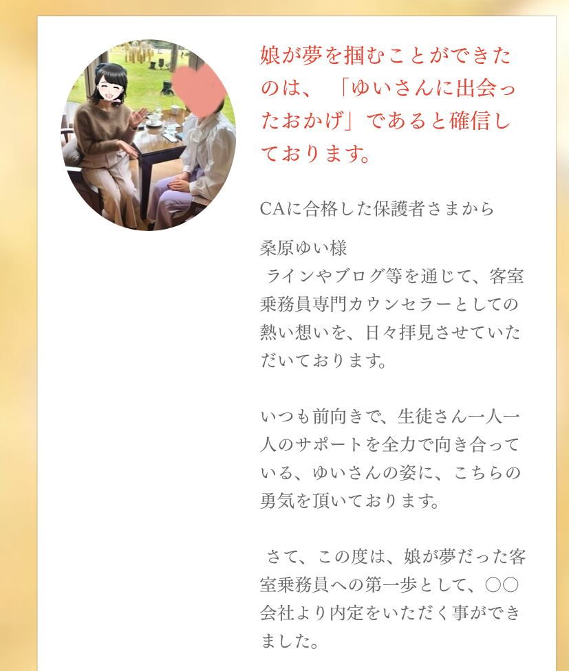 私の目標は、あなたの縁のあったエアラインで活躍し、最高のCA人生を歩んでいたただくことです。